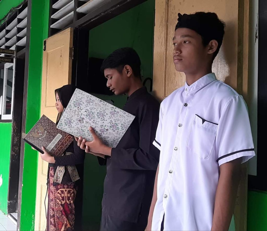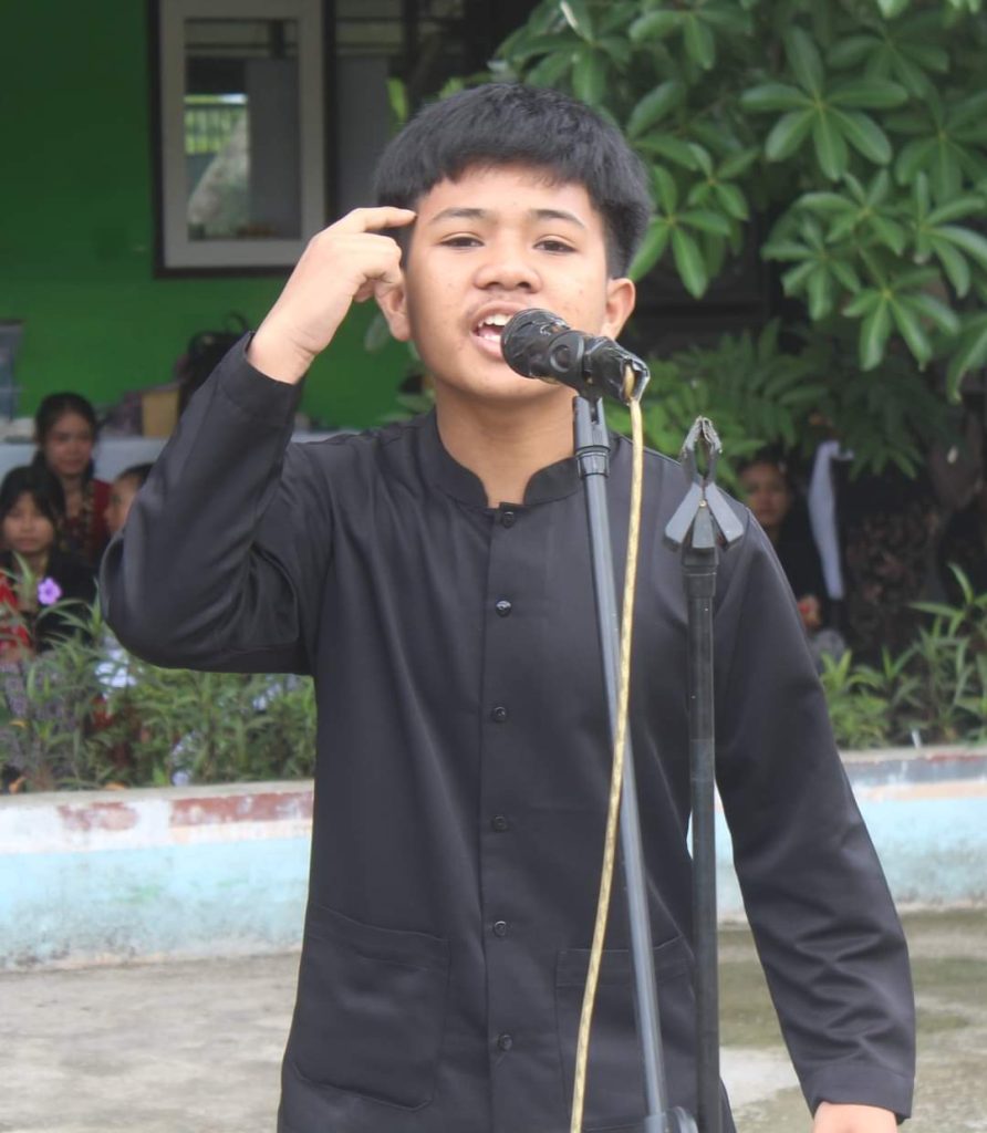 2 Siswa dan 1 Siswi SMPN 2 Bangorejo membaca puisi dan pantun yaitu: Aldino , Farel dan Geisha