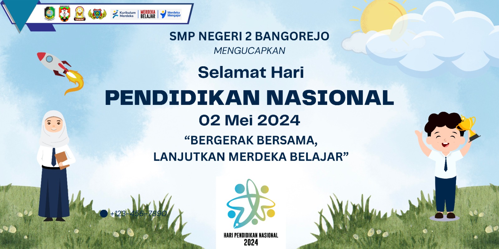 SMPN 2 Bangorejo memperingati Hari Pendidikan Nasional bertema “Bergerak Bersama, lanjutan Merdeka Belajar” dengan cara upacara bendera dan penampilan dari siswa siswi SMPN 2 Bangorejo yaitu membaca puisi dan pantun