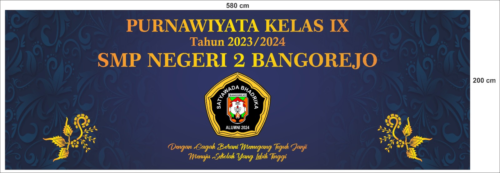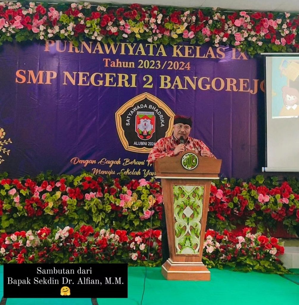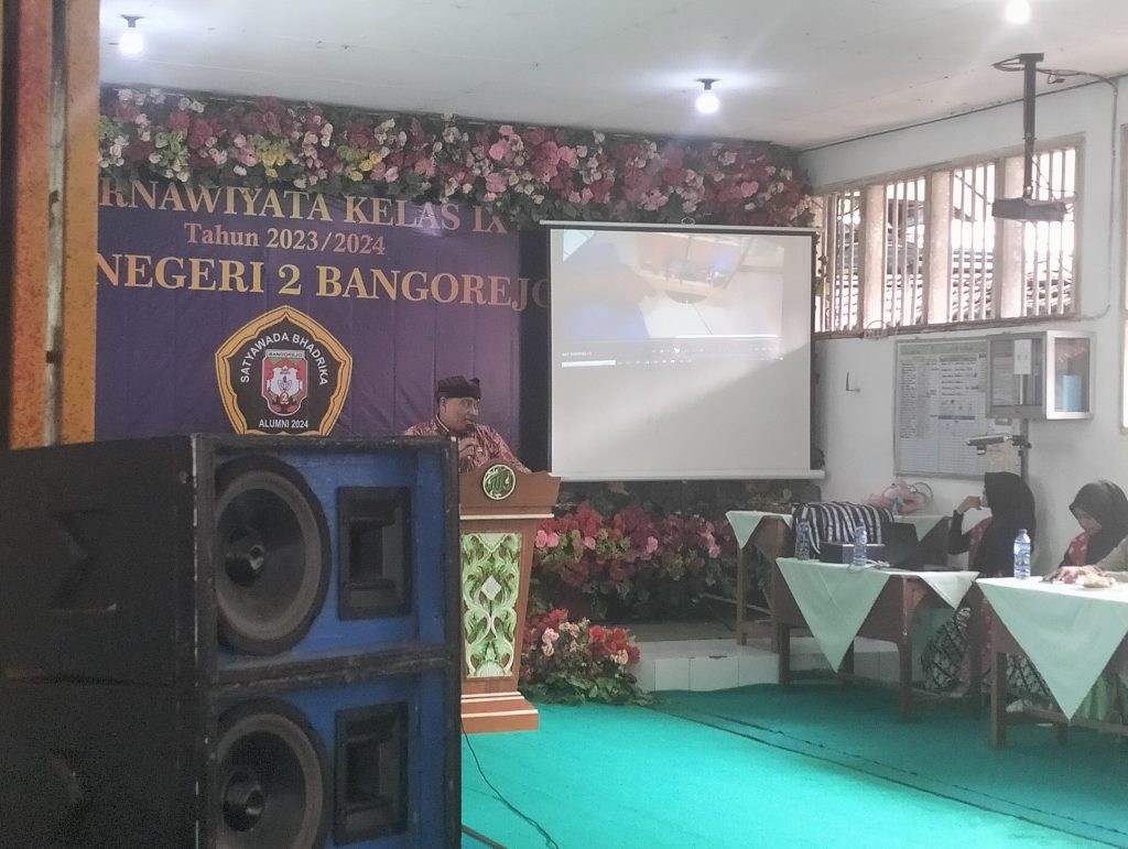 SMPN 2 Bangorejo kelas IX melasanakan purnawiyata dengan tema Dengan Gagah Berhari Memegang Teguh Janji Menuju Seolah yang Lebih Tinggi dengan penampilan seni tari dan pramuka dari siswa siswi SMPN 2 Bangorejo