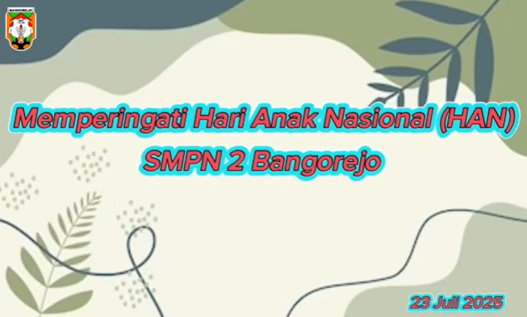 23 Juli 2025, Untuk memperingati Hari Anak Nasional (HAN) SMPN 2 Bangorejo mengadakan Senam Anak Indonesia Hebat, menyanyikan lagu indonesia raya, makan bergizi bersama dan ada penampilan siswa yaitu menyanyi, menari tari tradisional dan siswa bermain permainan tradisional.