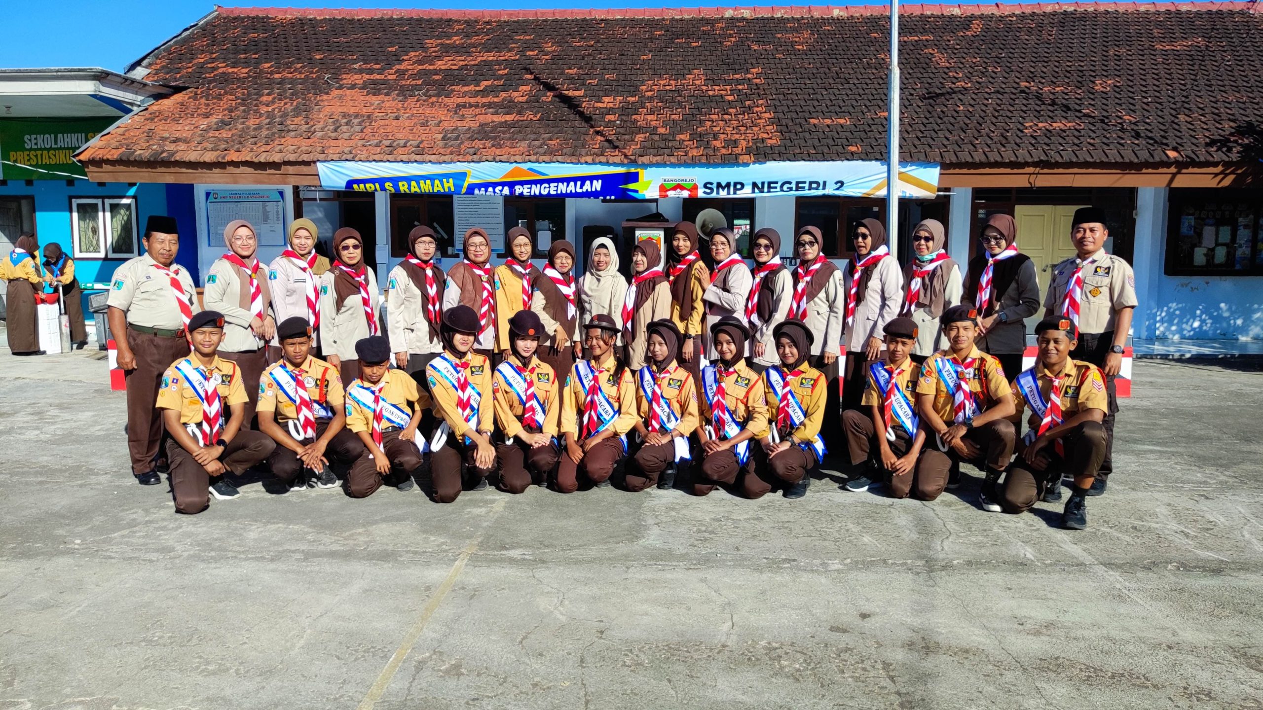 Kamis, 14 Agustus 2025, Upacara Hari Pramuka di Sekolah dalam rangka memperingati Hari Pramuka ke-64, SMPN 2 Bangorejo menyelenggarakan upacara bendera pada Kamis, 14 Agustus 2025. Upacara dilaksanakan di halaman sekolah dengan penuh khidmat dan diikuti oleh seluruh guru, karyawan, serta siswa. Bertindak sebagai pembina upacara adalah Bapak Muhammad Syamsul Arifin, S.Pd., selaku salah satu Pembina Pramuka di SMPN 2 Bangorejo yang menyampaikan pentingnya menumbuhkan sikap disiplin, tanggung jawab, dan semangat gotong royong sebagai wujud pengamalan Dasa Dharma Pramuka.